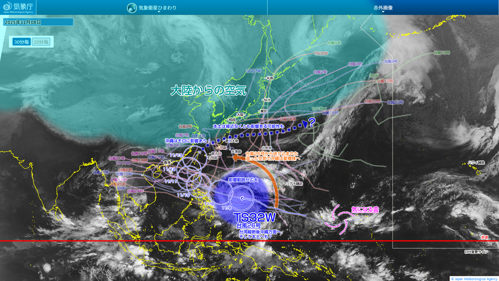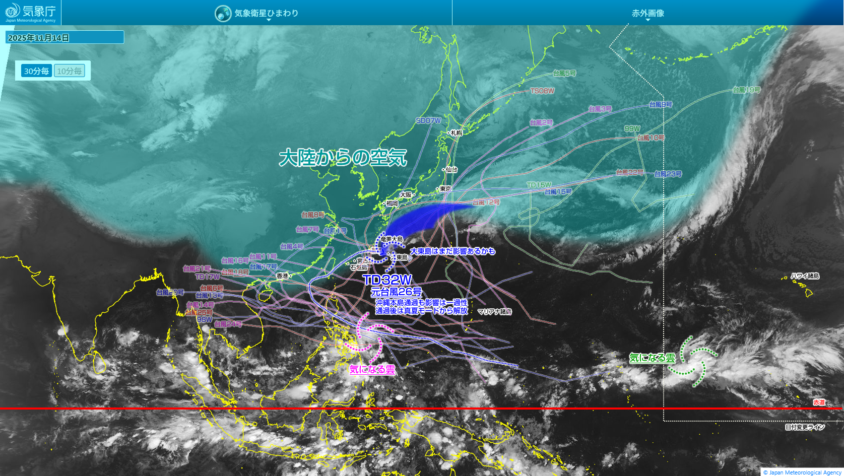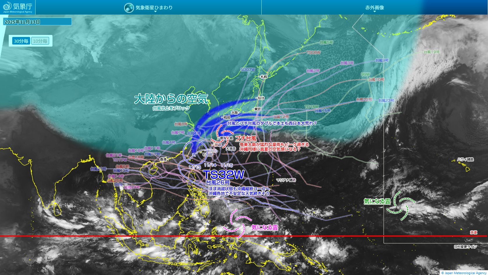 さらに今朝は那覇空港で18度台。体感温度に至っては「8.6度」と一桁台になっています。昨日の朝のあの温暖な空気はいずこへ?って感じです。さすがに今朝はサガリバナの開花は無理かな?でもサガリバナって開花する日の気候ではなく前日までの気候で開花するか否か決めるので、おそらく今日も那覇市街のどこかしらで開花してそうですけどね。