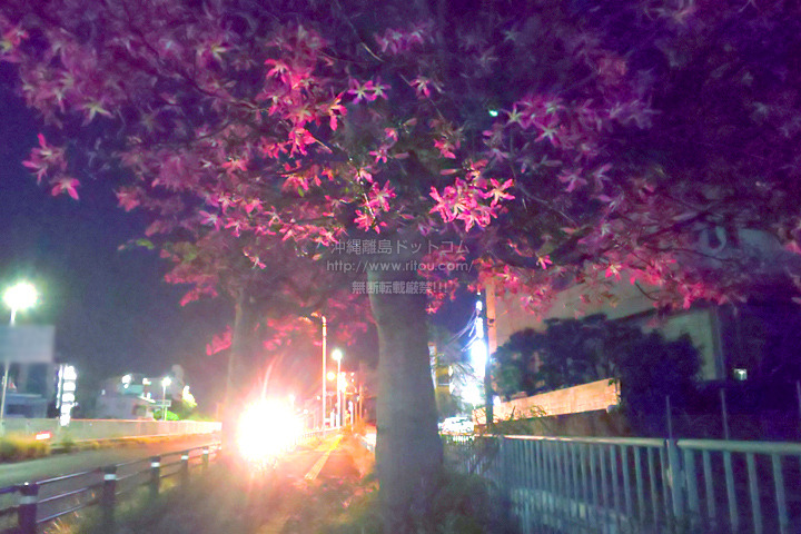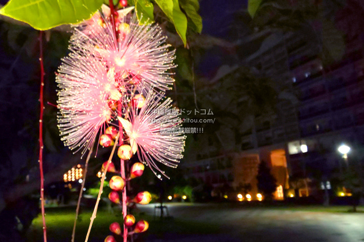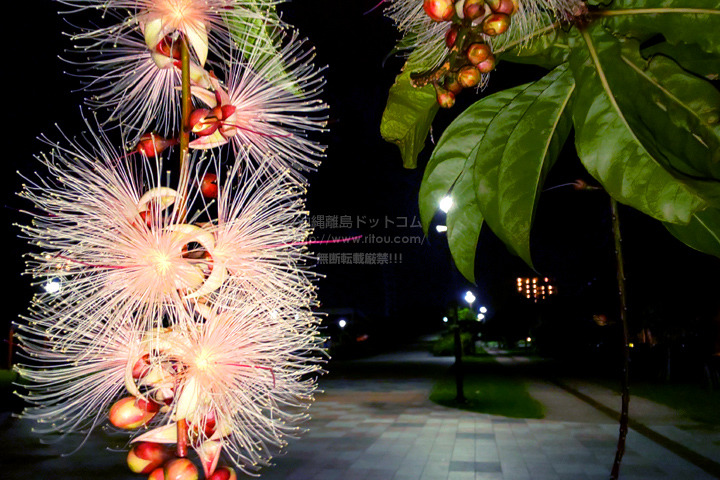 サガリバナ開花中の新都心公園。夜明け前の暗い時間は高木のトックリキワタは満開で暗くても望みにくいものの、その代わりに夜明けとともに散ってしまうサガリバナは良い感じで望めます。11月も後半になるのに新都心公園はもちろんのこと、那覇市街の各所でサガリバナの開花を望めているんですよね〜。特に新都心公園がある「那覇新都心(おもろまち/銘苅/安謝/天久)」では街路樹にサガリバナの木が多いのでなおさら目に付きます。
